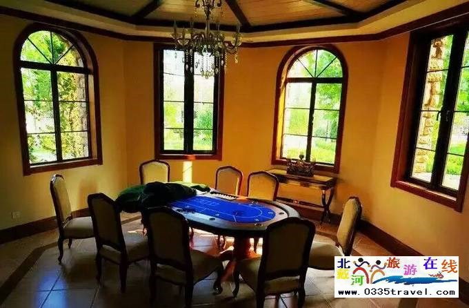 東戴河近海豪華別墅群擁有規格不一各種風格的獨棟別墅8棟,均按照五星級設施配備,別墅社區內配備室外泳池、室內溫泉、健身房、中西餐廳、KTV會所、兒童樂園、豪華游艇、海上餐廳等娛樂設施。別墅內部配置麻將機、小會議室,接待客廳以及有線電視、Wifi無線、空調,衛浴等生活設施。
